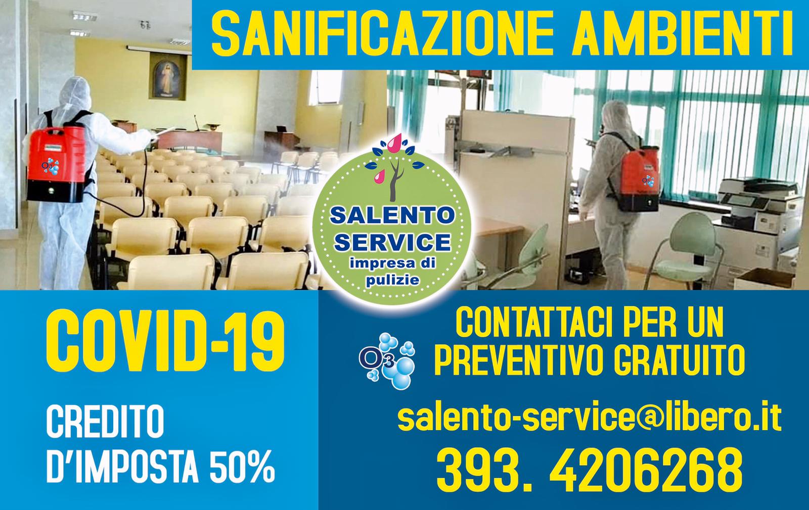 L'impresa di pulizie Salento Service srls offre interventi di sanificazione programmati con l'utilizzo di macchinari di ultima generazione in maniera da disinfettare naturalmente e in modo efficace fino al 98,99% delle superfici e dell'aria.